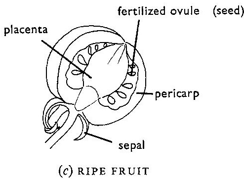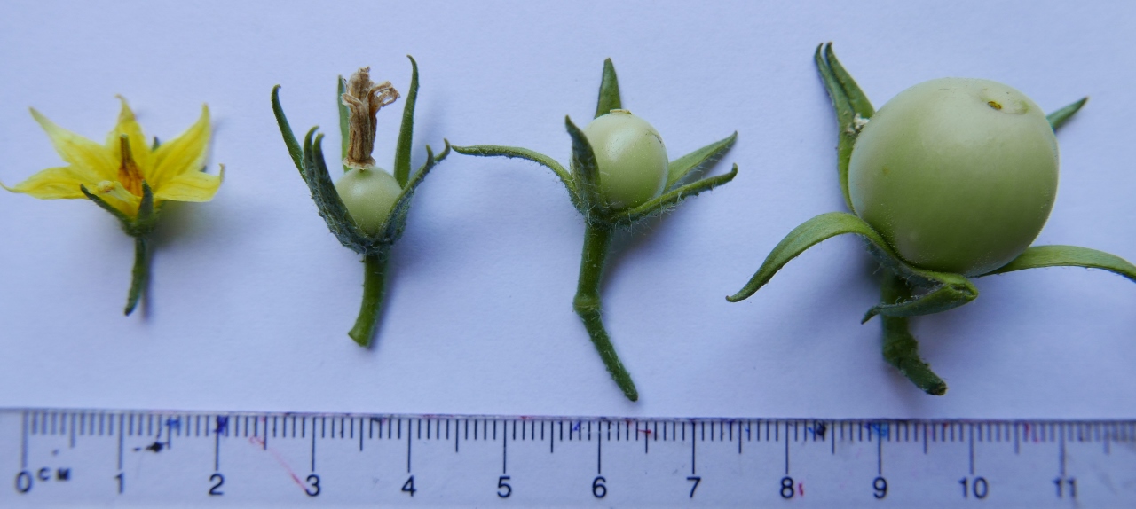 The volume of an ovary is about 0.5 mm3, the volume of a ripe fruit is about 130 000 mm3,