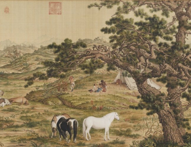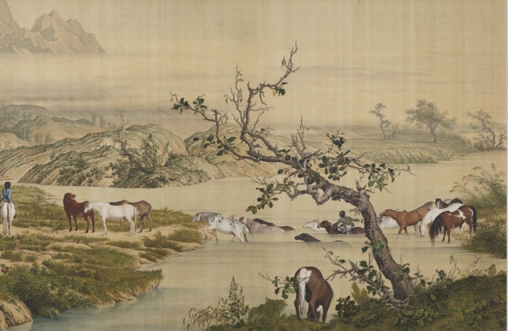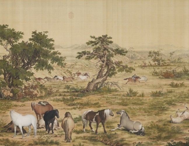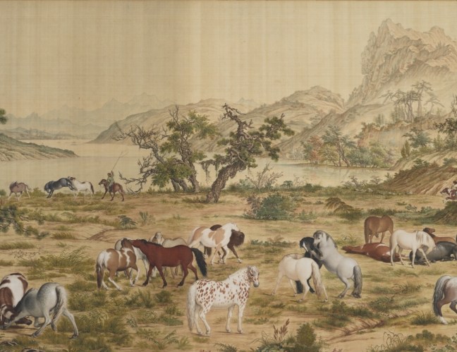Castiglione (朗世寧)(1688-1766) One Hundred Horses (百駿圖), dated 1728, ink and watercolour on silk, 94.5 × 776 cm, only a portion is shown, National Palace Museum (國立故宫博物院)Same as above, only a portion is shown.Same as above, only a portion is shown.Same as above, only a portion is shown.Same as above, only a portion is shown.