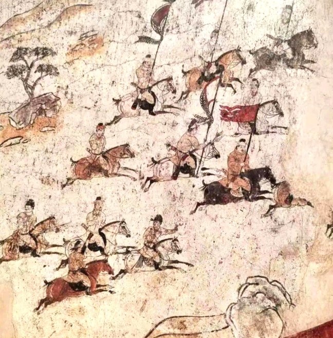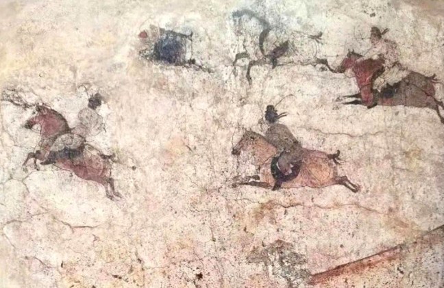The frescoes from Li Xian (李賢), Prince Zhanghuai’s (章懷太子) tomb are important Tang Dynasty artworks linked to the son of Empress Wu Zetian (武則天). The tomb features over 50 murals depicting scenes of court life and activities like hunting and polo sport.