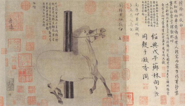Han Gan (韓幹)(active ca 742 – 756) Night-shining White (照夜白圖卷), handscroll, ink on paper. 40.8 x 34 cm), The Metropolitan Museum of Art