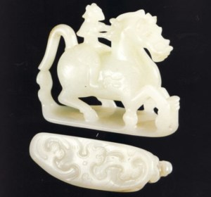 Shang dynasty (商朝)(16th – 11th centuries BC), a jade pendantQin Dynasty (秦朝)(221 – 206 BCE)Han Dynasty (漢朝)(202 BCE- 220 CE)Han Dynasty (漢朝)(202 BCE- 220 CE), a horse with a riderLiao Dynasty (遼代)(916 – 1125)Qing dynasty (清朝)(1644 – 1912)