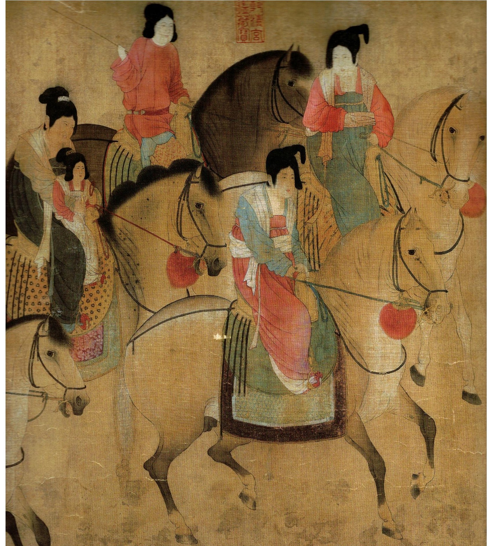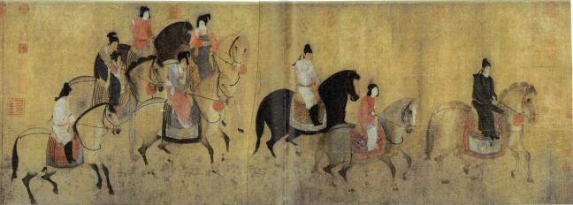 Zhang Xuan (張萱)(713-755) The Spring Outing of Lady Guo State (虢國夫人遊春圖), ink and watercolour on silk, 52 x 148 cm, Liaoning Provincial Museum (遼寧省博物館)details of the above painting