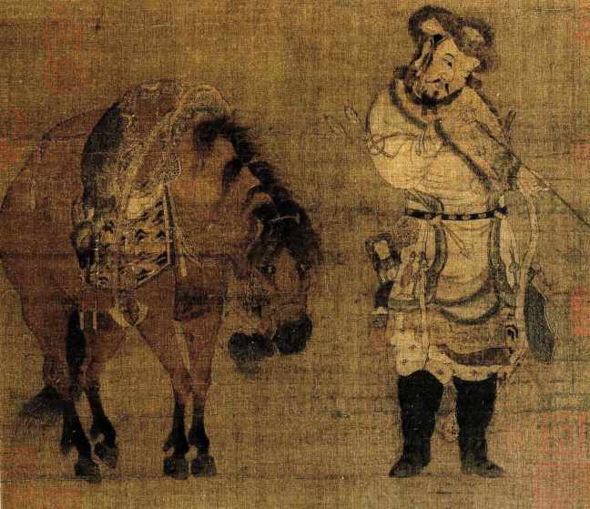 Li Zanhua (李贊華)(original name:Yelü Bei 耶律倍) (909 – 946) The King of Dongdan Goes Forth (東丹王出行圖), scroll, light colours on silk, 77.3 x 146.8, (only a portion is shown), National Palace Museum, Taipei (國立故宮博物院)