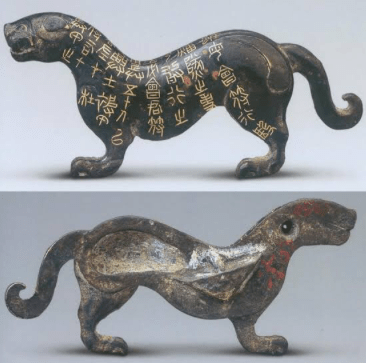 Two-piece tiger tallies (虎符) were used to verify troop deployment orders (調兵憑證) from the central government. Left pieces were issued to local commanders, and right pieces were retained by the central government. Government orders were deemed to be authentic if they were accompanied by the right piece matching the recipient’s left piece. The use of tiger tallies began in Western Zhou Dynasty (西周) 1046 BC -771 BC. Tiger symbolism stands for strength, fearlessness and military prowess.