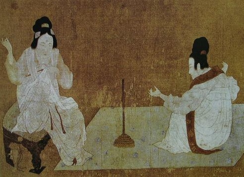 The original painting, attributed to the Tang painter Zhang Xuan (張萱) (c713 – c755) was lost. The present painting, attributed to Emperor Huizong (宋徽宗) or his court artist is now kept in Museum of Fine Art, Boston, USA.
