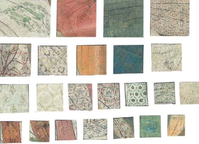 There are only two figures in the second part of the painting, one sitting on the ground preparing a fine thread and the other sewing while sitting on a stool. Their dresses and hairstyle were also beautifully painted.