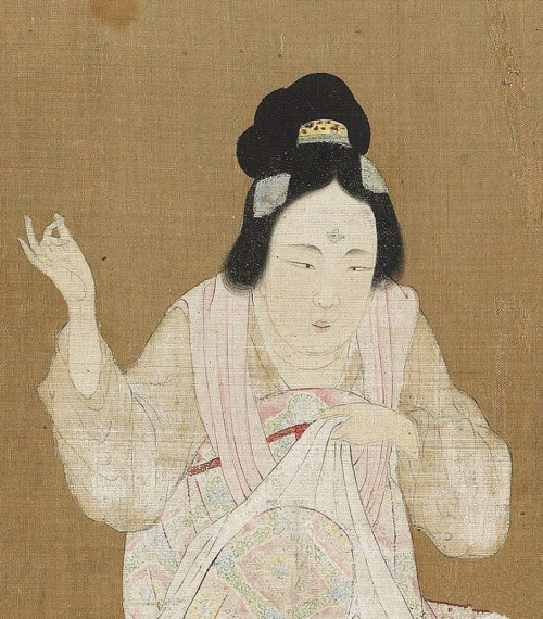 People in the Tang Dynasty adored plump and chubby women instead of slender and slim ones. A plump woman symbolized her wealth and standing. All the figures in the painting are plump and round-faced.